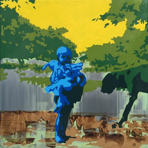 Écossais ayant longtemps vécu en Zambie, fixé en France depuis des années, Dale Joseph Rowe peint, sculpte, photographie, crée des céramiques. Ses Portraits de famille sont des tableaux réalisés à partir d’anciennes photographies de famille, prises en Afrique ou en Écosse. Peintes sur des caissons en aluminium carrés, ces œuvres se comportent comme des icônes lisses, dans une technique similaire à celle de certains peintres de la Figuration narrative. Leurs couleurs sont lumineuses, souvent arbitraires, avec de larges plages où le métal réfléchissant est laissé en réserve. Des fragments de textes, illisibles, font parfois leur apparition en surcharge. Dans cette série, Dale Joseph Rowe nous propose la relecture d’un passé idéalisé, distanciée, où les histoires et les conflits ont perdu toute acuité, toute pertinence, pour ne laisser que des reflets détachés de leur contexte historique. Site web: dalejosephrowe.fr |